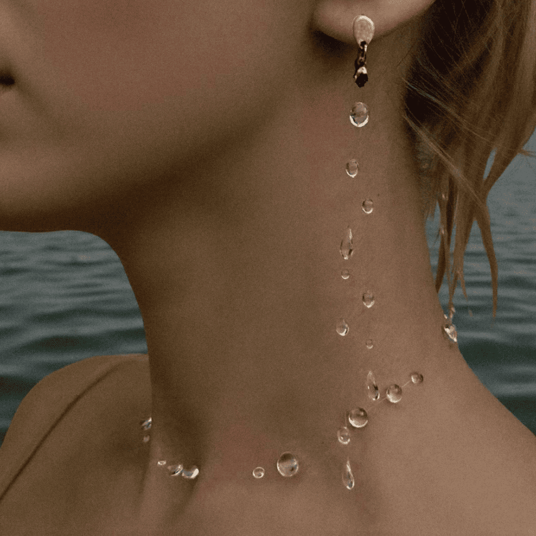 Il Set Collana Goccia d'Acqua racchiude la purezza della natura in un gioiello delicato e poetico. Gocce trasparenti che catturano la luce come rugiada del mattino, sospese su una catenina argentata regolabile. Un effetto acqua cristallina che si adatta perfetto al collo, da indossare choker o a lunghezza classica. Include collana e orecchino monofilo coordinato per un look armonioso. 💧