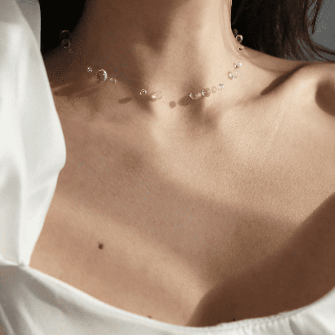 • Collana regolabile con gocce trasparenti