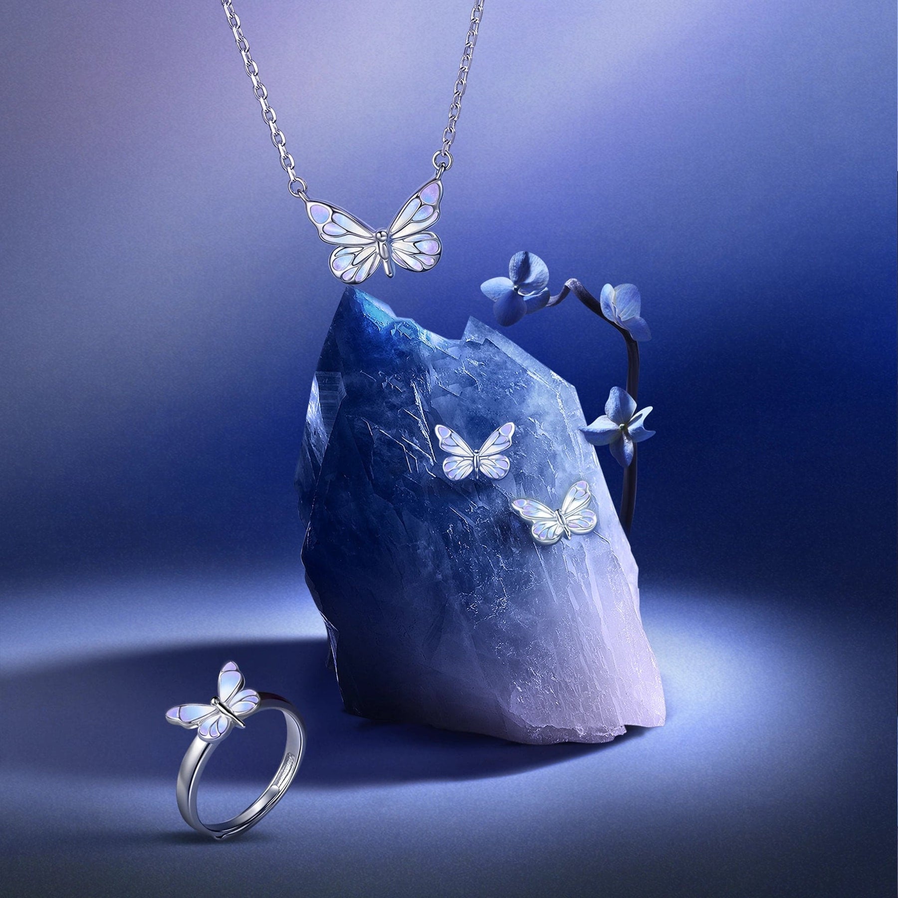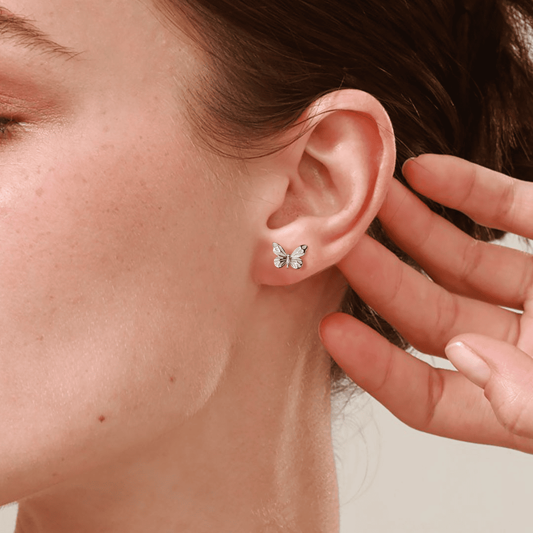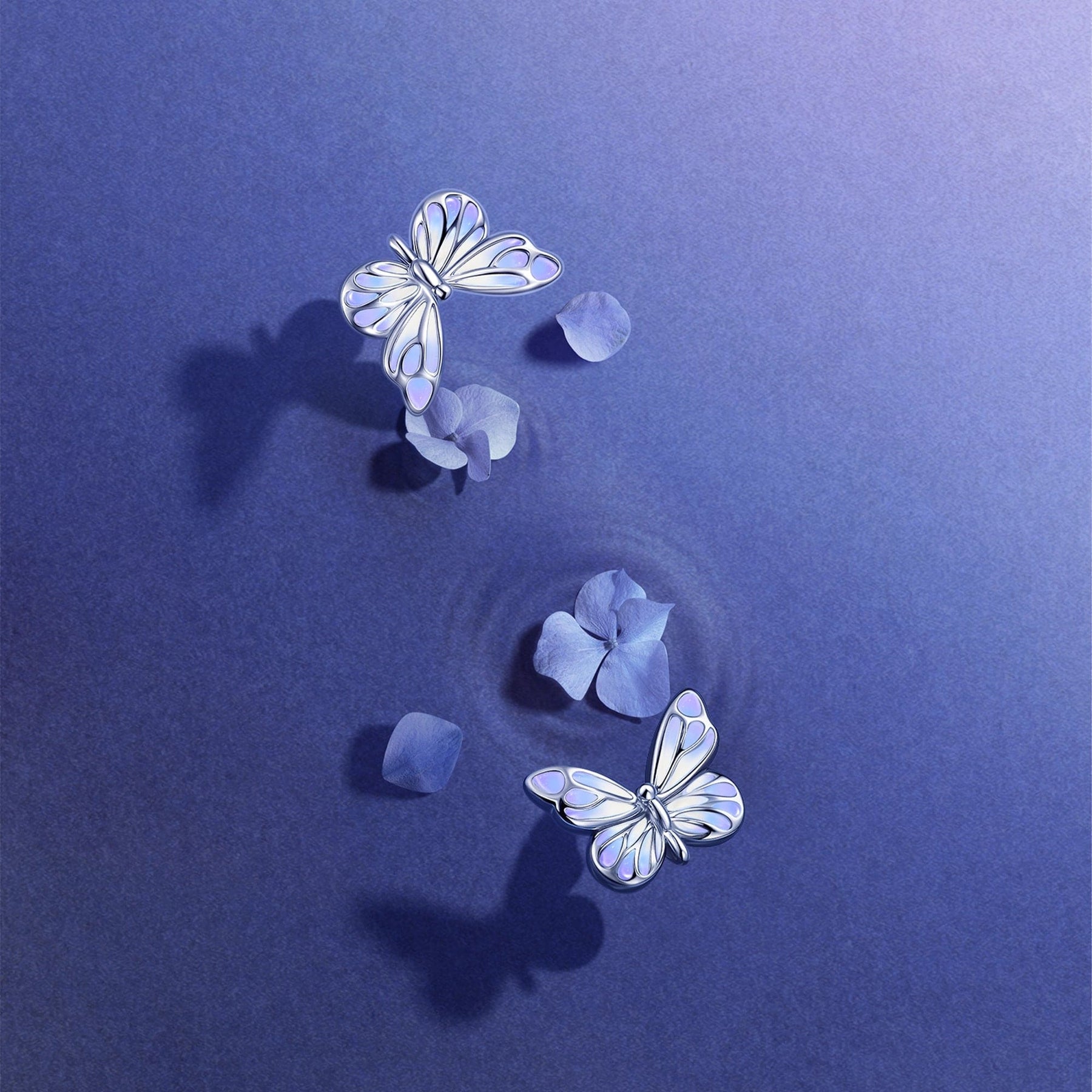 Gli Orecchini Farfalla Blue Dream racchiudono la leggerezza dei sogni in un gioiello delicato. Farfalle smaltate azzurre che danzano leggere dal lobo, creando un effetto poetico e sognante. Il contrasto tra l'argento luminoso e le ali blu iridescenti cattura la luce ad ogni movimento, regalando un tocco di magia al viso. 🦋